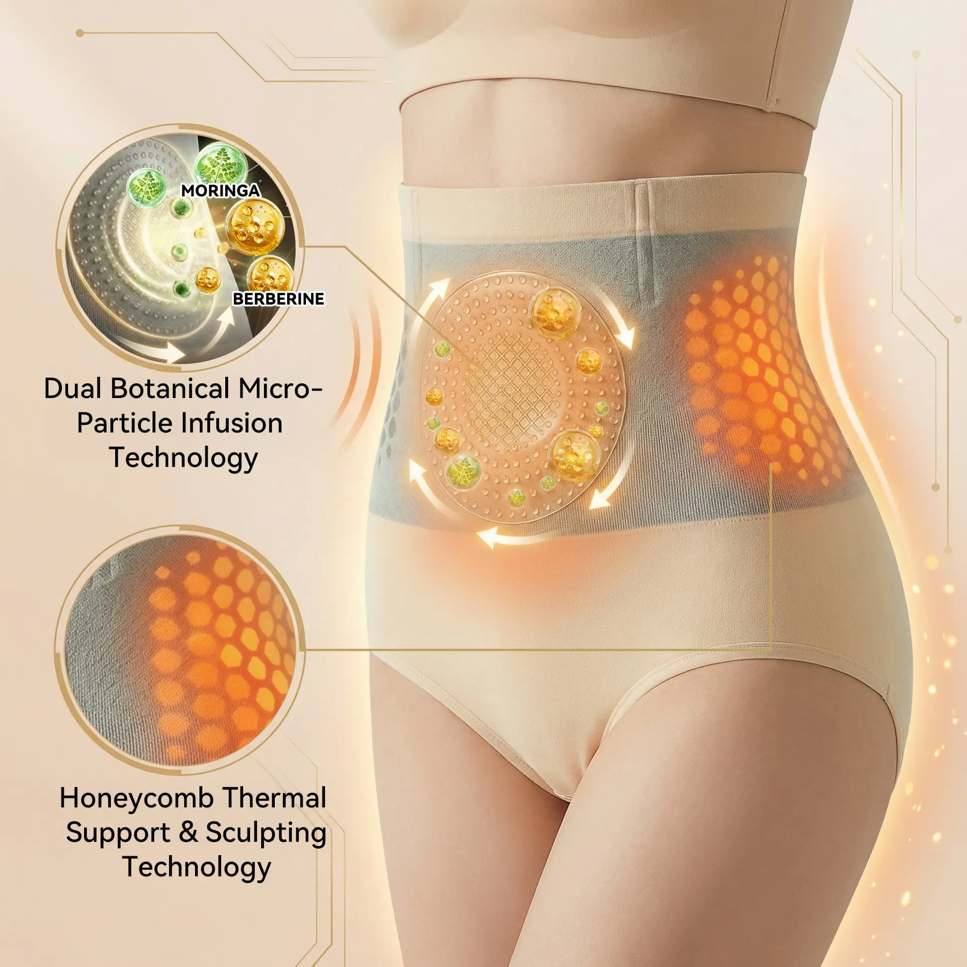By infusingย Moringaย essence into the fabric and utilizing a unique process to embed high-purityย Berberine, these functional shorts can release natural alkaloid molecules. The combination ofย Moringa Therapyย andย Berberine Metabolic Therapyย offers variousย health benefits, including accelerating fat oxidation by activating the AMPK energy switch, balancing blood sugar levels, and reducing systemic inflammation, thereby precisely improving abdominal circulation and optimizing metabolic health from the foundational level.
